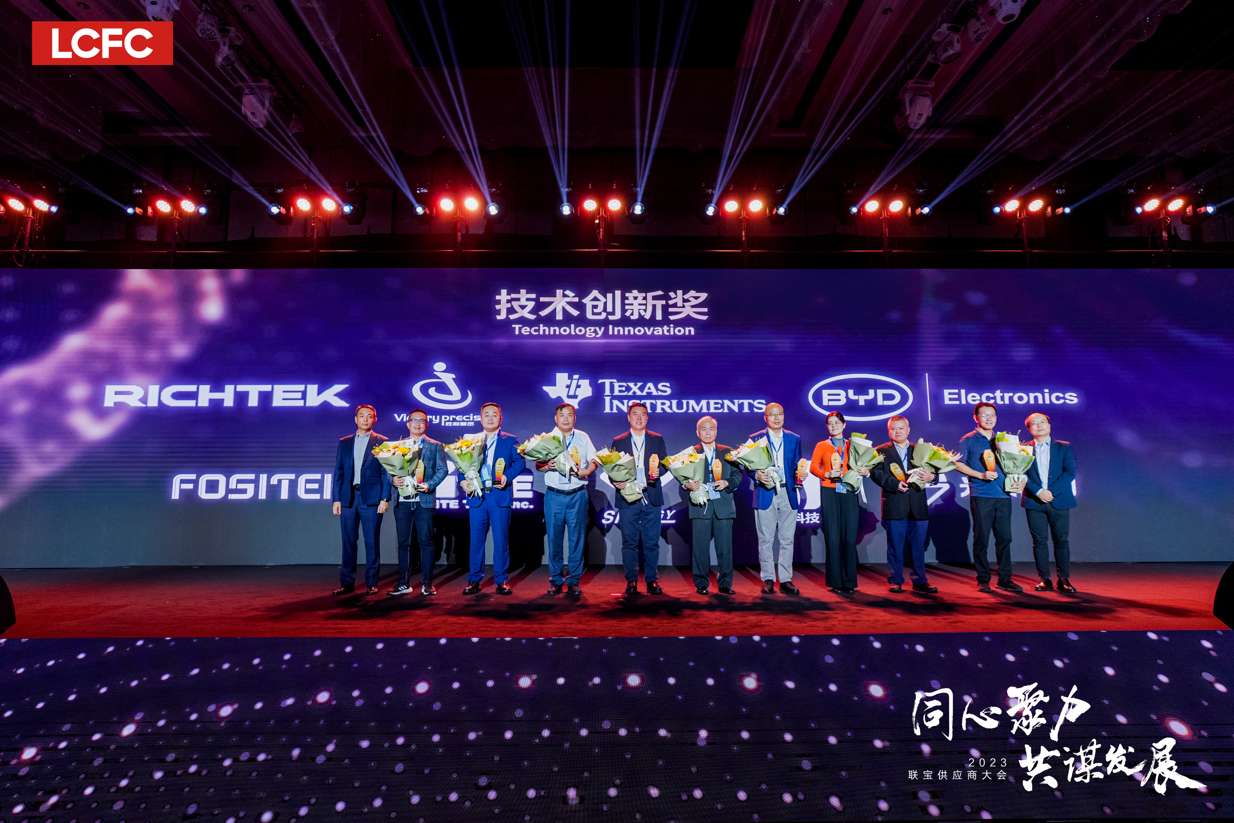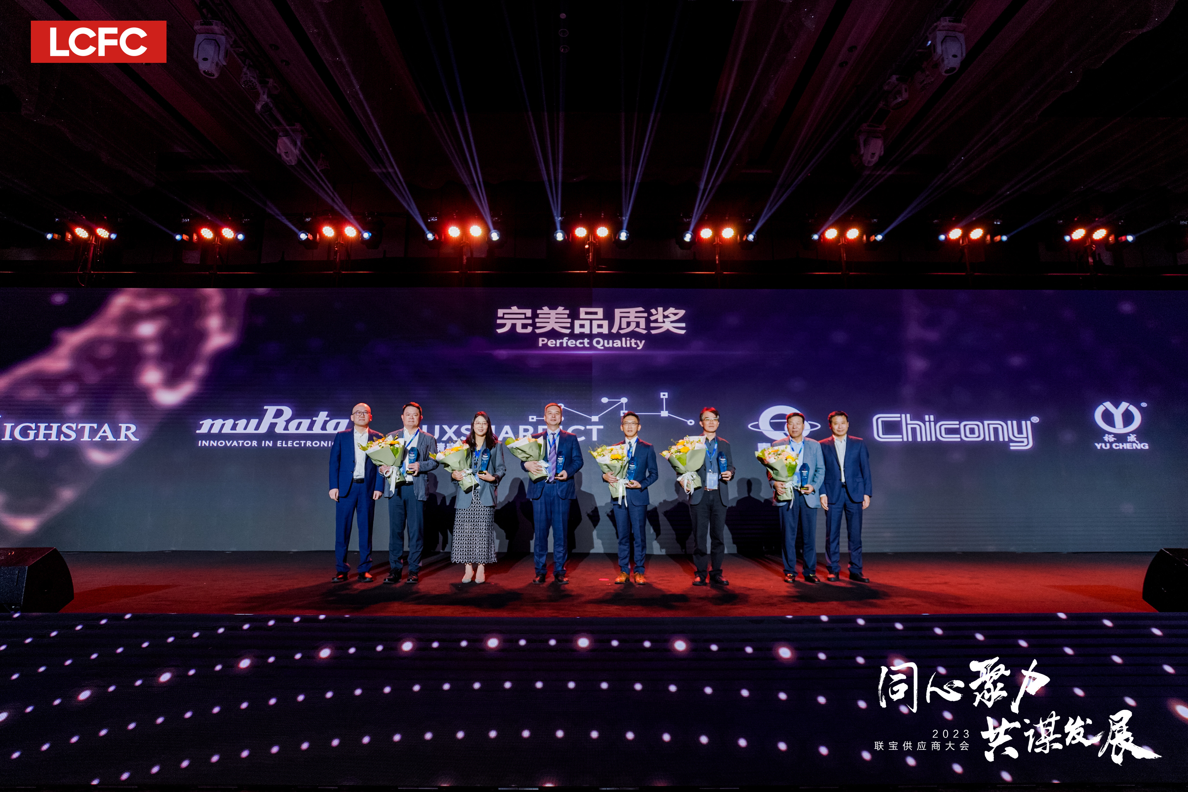 大会尾声,,,,联想与尊龙时凯科技管理团队代表与钻石奖获奖供应商嘉宾再次登台,,,,共同开启 “同心聚力,,,,共谋发展”的美好愿景。。。。