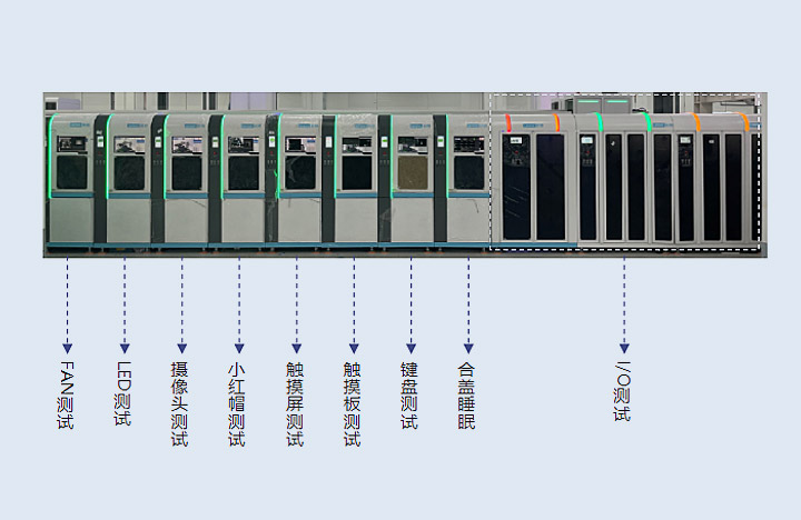 以机械模拟人的敲击、、、、触摸、、插拔、、、听说等操作,,,对产品进行全功能自动测试,,,以及可追溯的测试数据保障产品的卓越品质。。。。